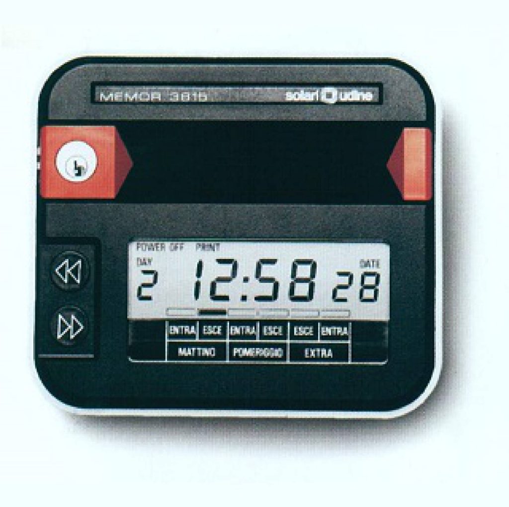 Il Memor 3815 consente di gestire il tempo su base 12 o 24 ore con un programma di 7/15/31 giorni. La stampa è bicolore e lo spostamento orizzontale della stampante, come anche il cambio dell’ora legale/solare, sono automatici. Tra le opzioni vi sono dispositivi di segnalazione acustica, interfaccia per l’installazione di sincronizzazione oraria in sistemi centralizzati, kit per l’utilizzo di schede fuori standard Solari.