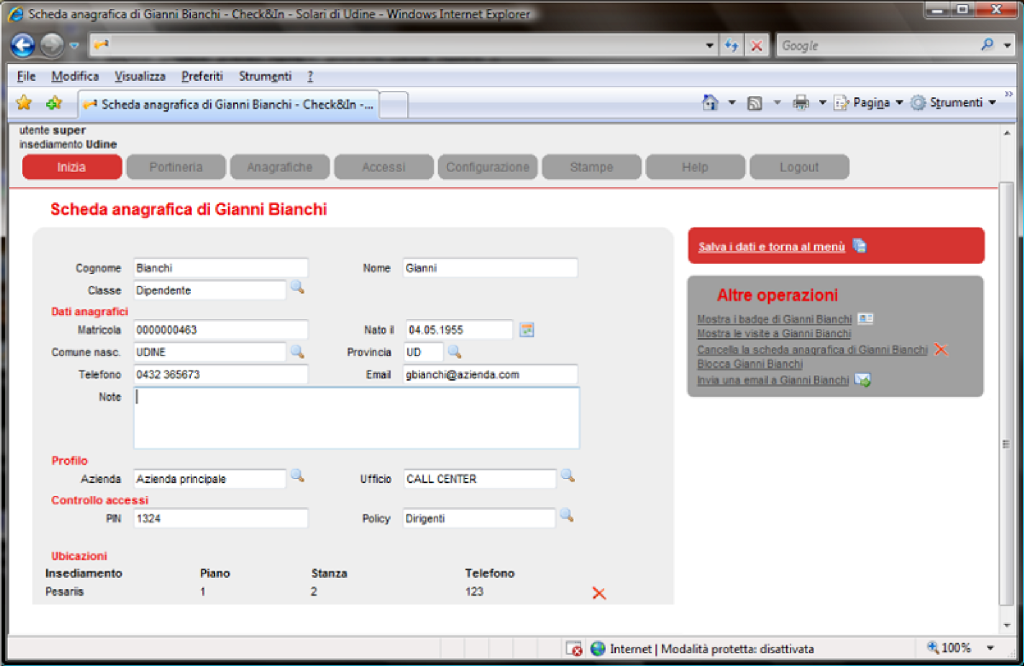 L’amministratore del sistema, attraverso la creazione di profili, definisce le aree consultabili e le funzionalità per ogni operatore.