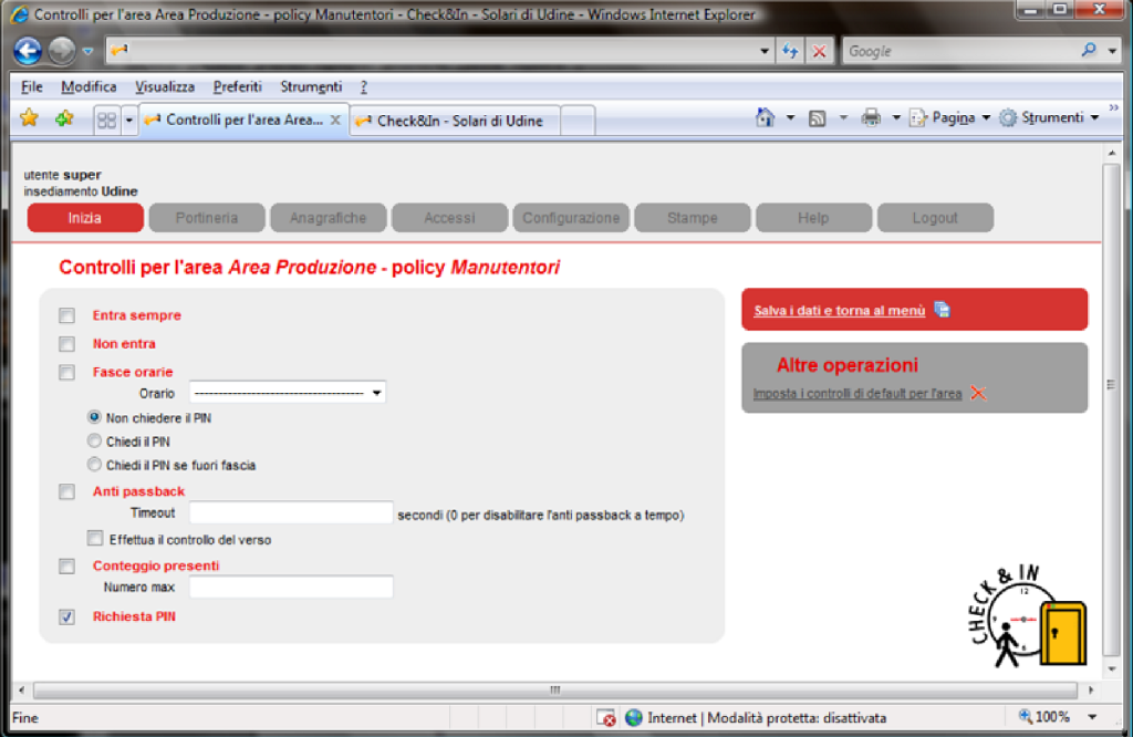 Tramite tale applicativo è possibile definire le politiche di accesso alle varie aree della struttura, specificando per ognuna di esse chi può entrare e quando.