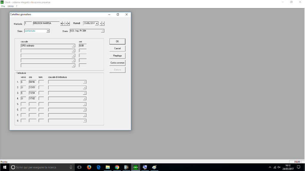 Acquisizione ed elaborazione delle timbrature, per il calcolo delle ore ordinarie e straordinarie lavorate