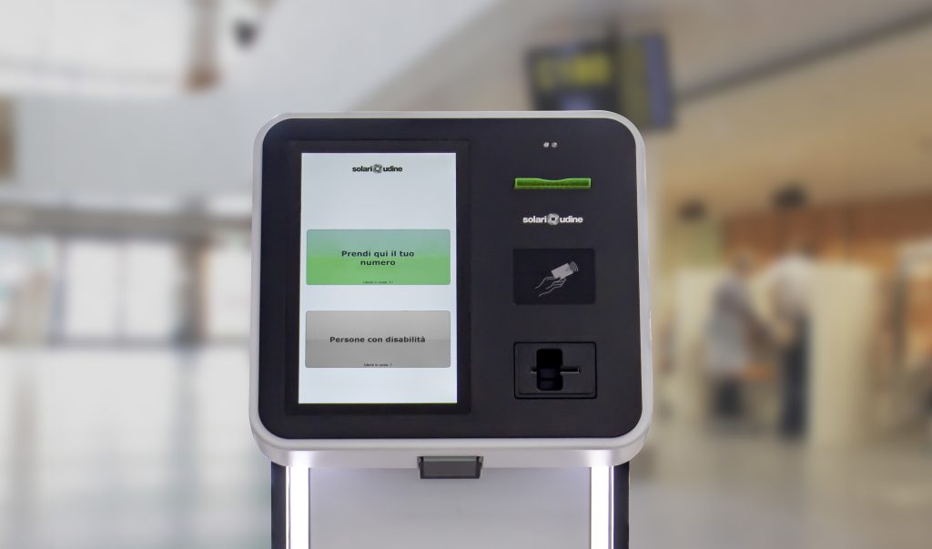 L’erogatore del sistema Solari Q funziona in modo semplice ed intuitivo, adatta ad ogni tipo di utenza: si preme il pulsante del servizio desiderato, si ritira il biglietto per l’attesa. Quello che rende questo strumento flessibile e sofisticato sta dentro: sul pratico display touch screen LCD-TFT (layout verticale per una migliore disposizione dei pulsanti) è possibile personalizzare gli elementi grafici per definire il numero di pulsanti da visualizzare, il colore, per riservare un’area del display ad informazioni dedicate, immagini o loghi. Per le informazioni testuali si possono definire proprietà quali il carattere da utilizzare e la relativa dimensione. E’ inoltre possibile personalizzare gli scontrini, in termini di contenuti e formato, in base al servizio.